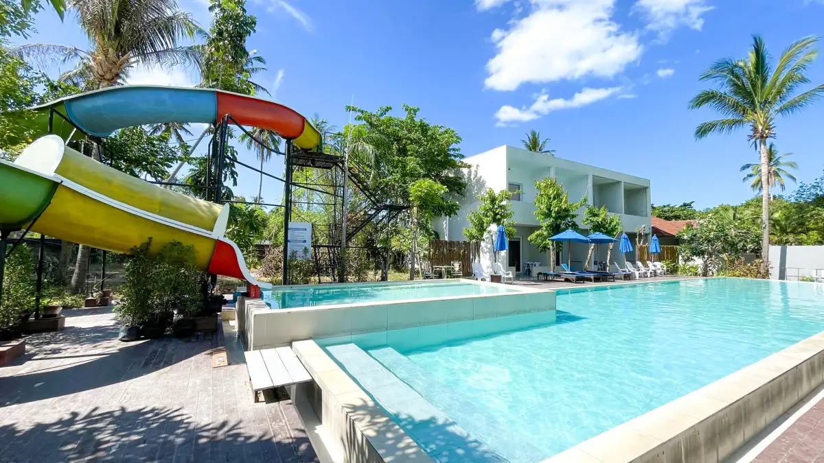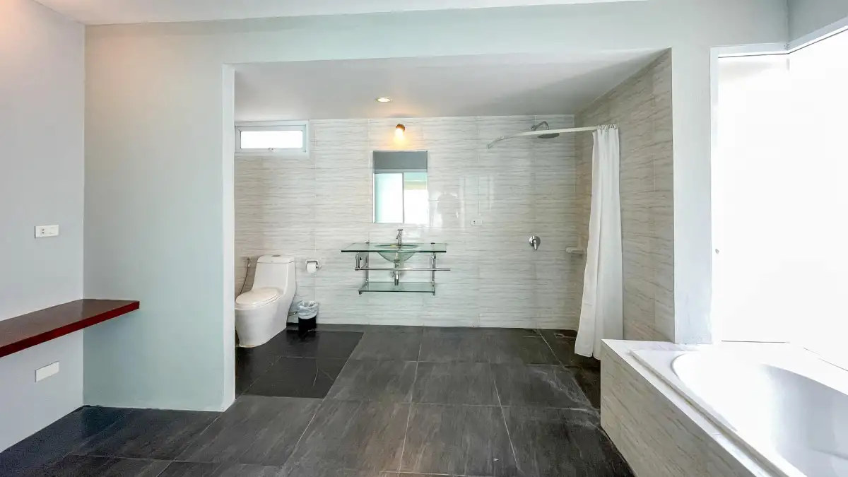 Experience laid-back island living with all the comforts of home in our spacious 2 Bedroom pool available for daily, monthly, or yearly stays. Each villa includes two comfortable bedrooms with closets, air conditioning, and two private bathrooms featuring bathtubs and hot water. Your private pool with jacuzzi offers a relaxing space to unwind, while the fully equipped kitchen with an electric stove and microwave makes cooking easy and convenient.