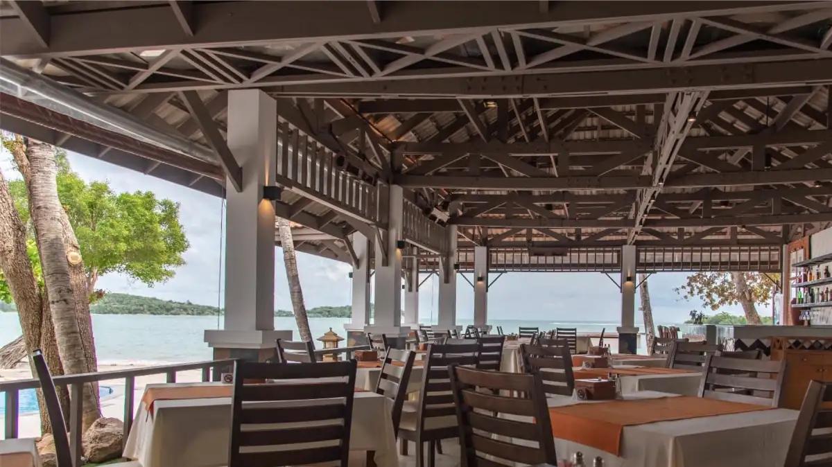 A relaxed yet refined dining experience, set on a scenic terrace with sweeping views of Chaweng Beach open daily. The restaurant invites guests to indulge in flavorful cuisine throughout the day in a serene beachfront setting.